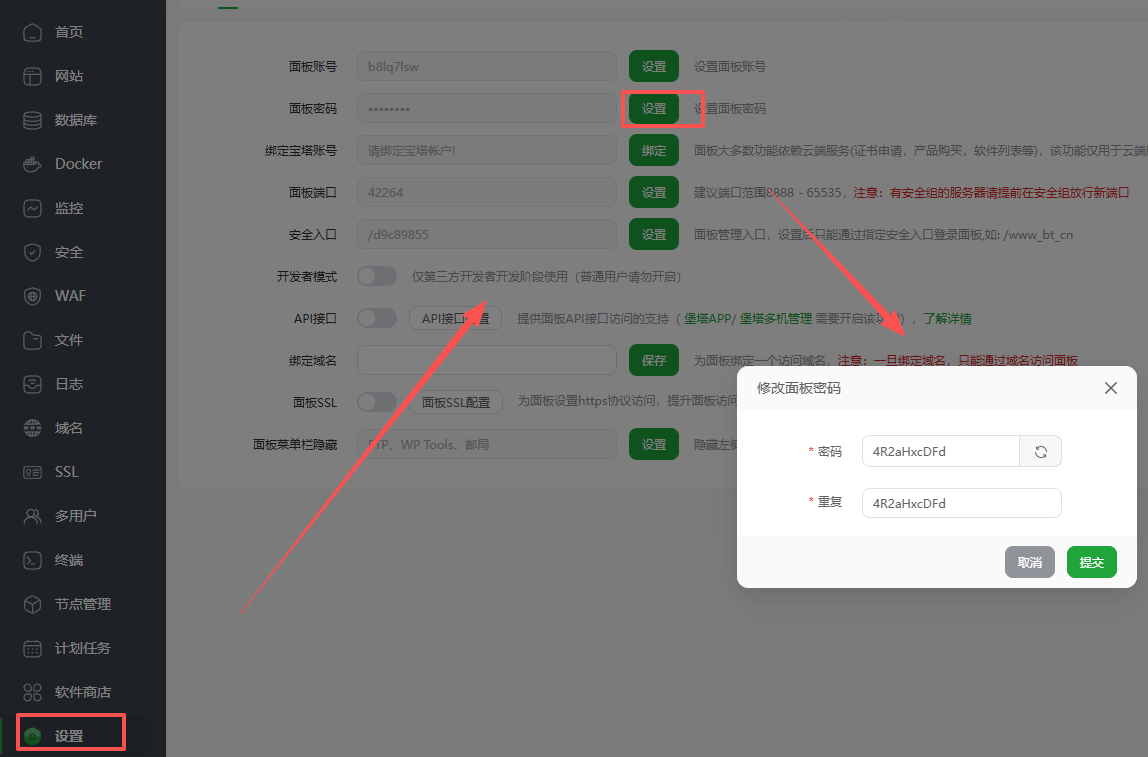 最重要的一件事是,修改面板密码,因为初始的账号密码都是机器生成的,很容易被破解,进入设置——常用设置——面板密码,修改即可。